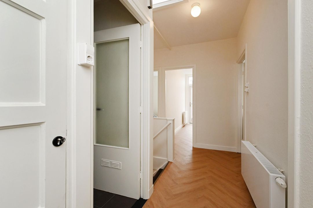 Entree op de eerste verdieping, ruime hal met meterkast en trap naar de tweede verdieping. Overloop met toegang tot alle vertrekken, de lichte woonkamer met erker aan voorzijde en open keuken aan de achterzijde.