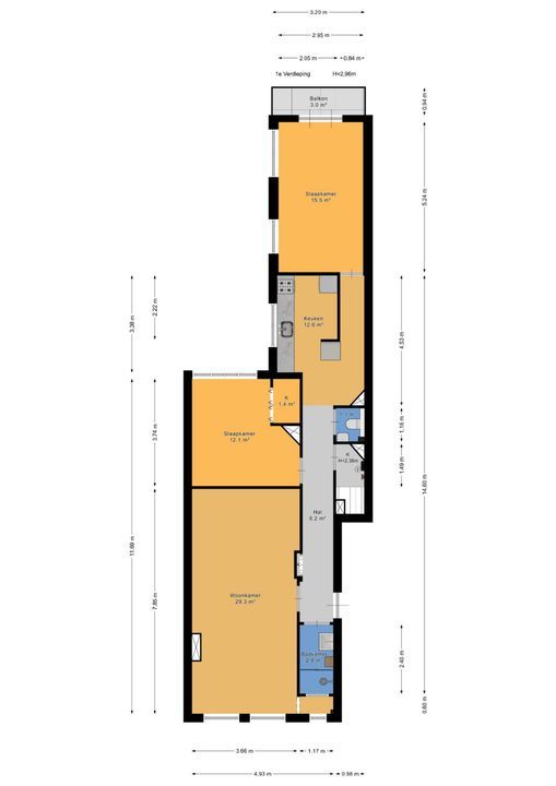 Bij binnenkomst valt direct de ruime en lichte woonkamer aan de voorzijde op. De moderne open keuken in het midden van de woning vormt het hart van het huis – een fijne plek om te koken, borrelen of gezellig samen te zijn. De woning beschikt over twee slaapkamers, waarvan de achtergelegen kamer toegang biedt tot het balkon. De nette badkamer, het separate toilet en handige bergkasten maken het geheel compleet.