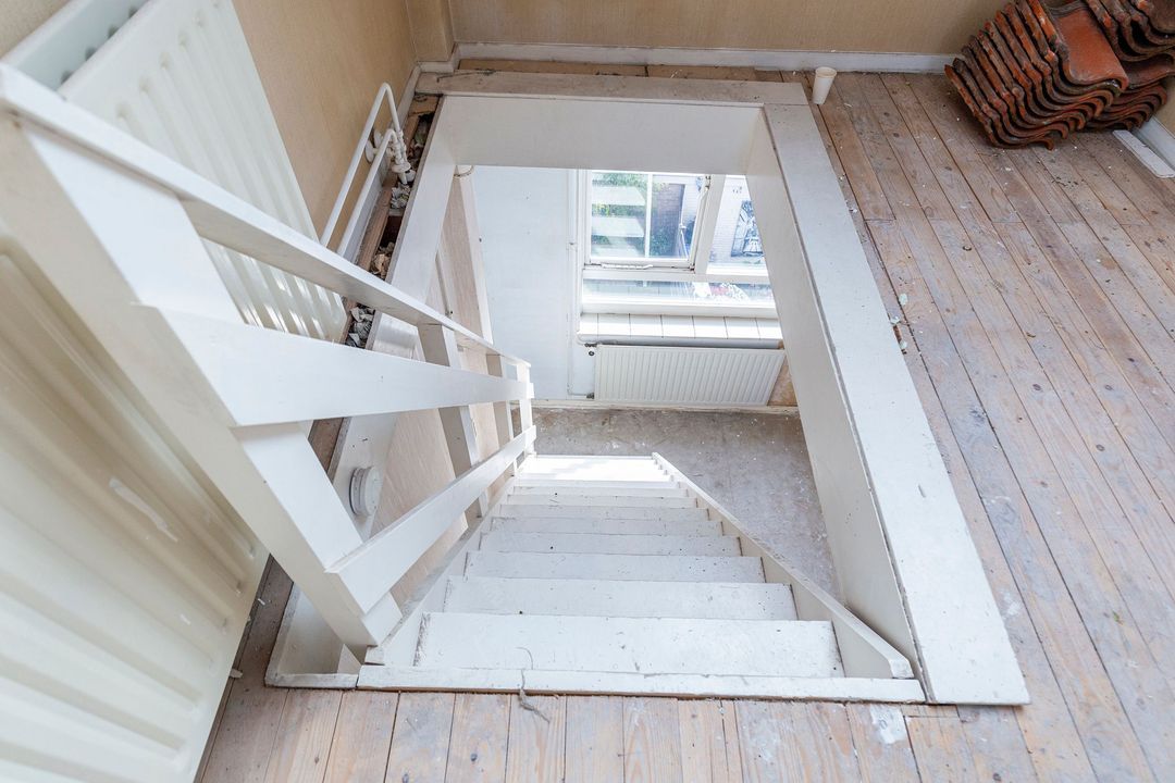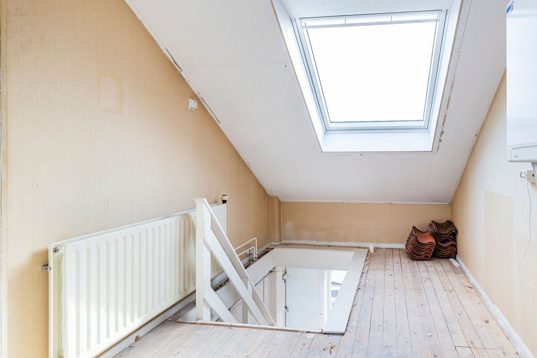 Trap naar de derde verdieping met royale overloop, twee slaapkamers, voorzien van dakramen en veel bergruimte. Op de overloop is plek voor een werkhoek en toegang tot een berging.